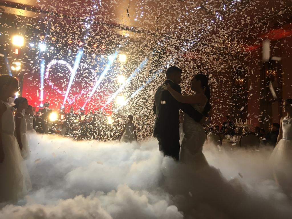 Pentru efecte speciale va oferim pentru dansul mirilor fum greu cu gheata carbonica, servicii pirotehnice autorizate indoor sau outdoor, tun de confetti, tun CO2.