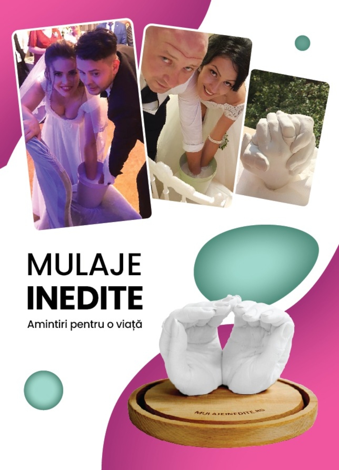 Producatori de kituri pentru mulajul mainilor, realizam mulaje personalizate tinerilor casatoriti chiar in ziua evenimentului. Detalii fine precum inelul de logodna, verighetele sau amprentele vor fi foarte bine evidentiate, creand astfel o amintire unica, pentru o viata!
