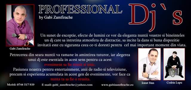 Totul a început dintr-o joacă sau nebunie, nu știu care ar fi termenul potrivit, din care n-a lipsit pasiunea cu care eram obișnuit să mă dedic fiecărui proiect. Dar nu mi-aș fi imaginat că după radio și televiziune, voi face ca petrecerile să devină cartea mea de vizită pentru că, la acel moment, chiar nu știam cât de provocatoare sunt nunțile față de orice altă seară de club, cu care eram obișnuit, de altfel, în calitate de DJ. Însă anii au trecut, iar eu mi-am dat seama că-mi iubesc să ofer amintiri de neuitat celor care, cu toată încrederea, își lasă cel mai important eveniment din viață în ‹‹mâinile›› agenției Wedding Planner. Iar în numele meu pot vorbi sutele de evenimente reușite, mulțumirea clienților pe care i-am avut de-a lungul timpului și prieteniile pe care le-am legat cu toți acești oameni minunați!